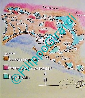 - TAVOLA GEOLOGICA 3 – Descrizione dei sedimenti in tutta l’attuale provincia Jonica. In azzurro sono identificate le aree palustri, tra cui le nostre Saline. In epoca Greca probabilmente il territorio era conformato come da descrizione della cartina;